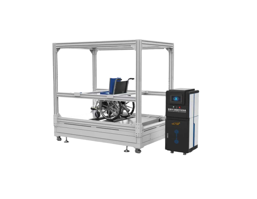 轮椅车双辊疲劳试验机用于测试轮椅车在经过一定时间的动态疲劳运行后整体及各零部件的受损情形,以便改良产品结构或牢固性之参考,并对成品车的质量是否满足标准要求提供依据。