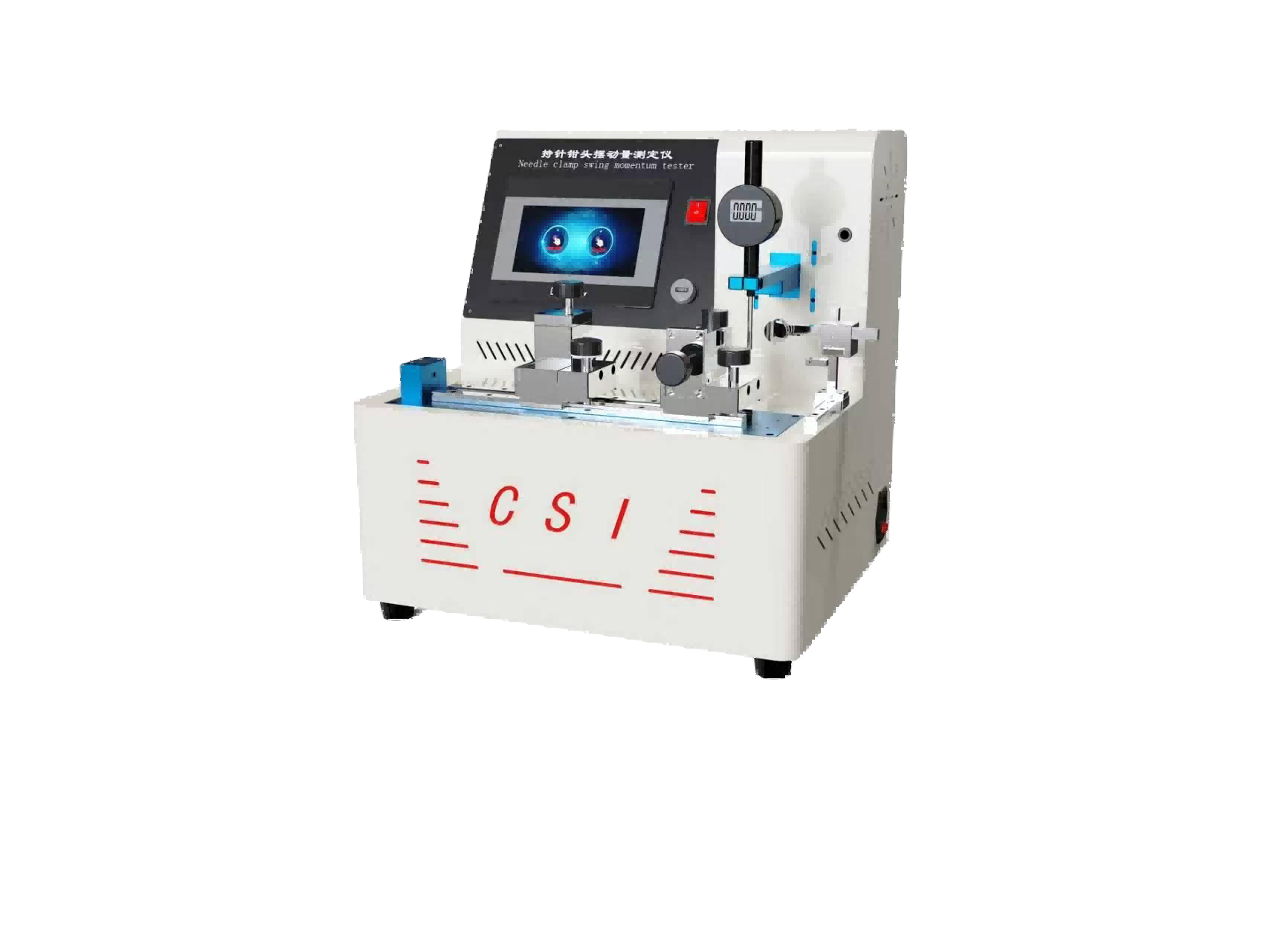 通过杠杆原理测量医用钳(含持针钳)钳头端在受力时的摆动幅度,反映器械操作稳定性。测试时需固定钳体鳃轴,施加规定摆动力后读取百分表位移值。
